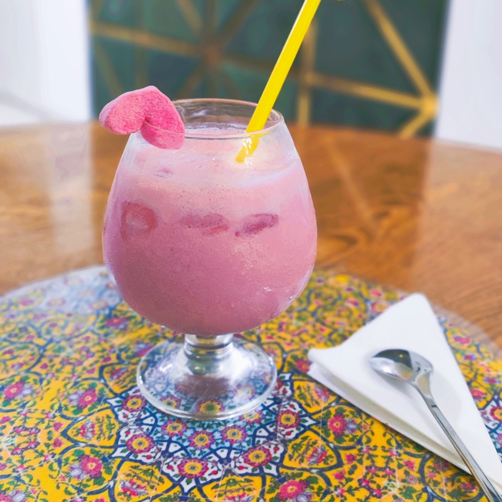 بستنی، شیر، سیروپ آلبالو، سیروپ کرن بری، یخ