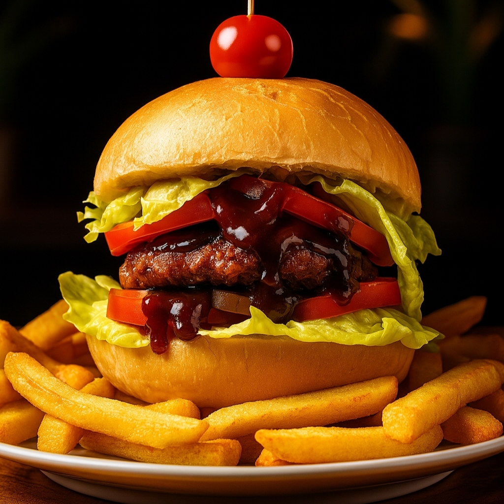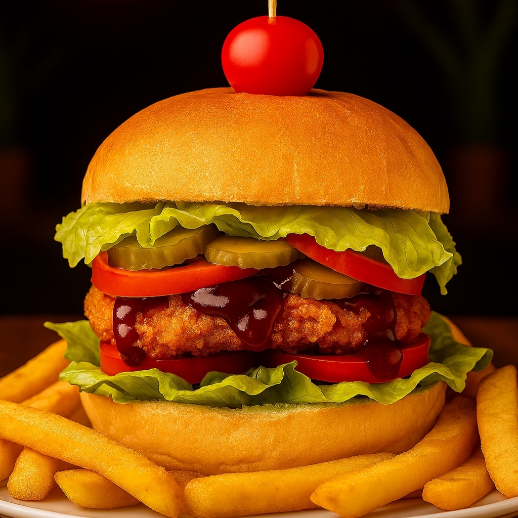 مینی همبرگر، شنیسل سوخاری، کوکتل، سیب زمینی، کاهو، گوجه، خیارشور